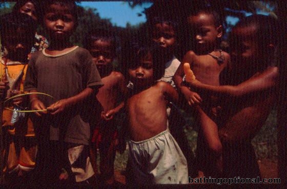 Another group of local village children. At every village they would come running to greet us and then sort of shy away. Cambodia, Siem Reap - 06-Apr-03