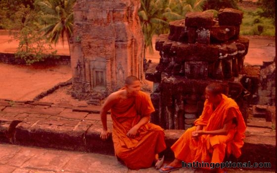 Couple monks taking in the sunset.