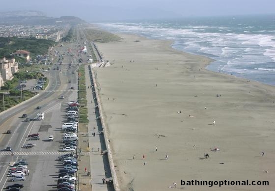 View down the length of Ocean Beach from Sutro Heights Park. United States, San Francisco - 14-Feb-04