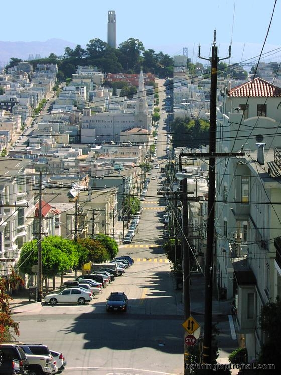 View down San Franciscos steepest street. It doesnt look so bad here but wait till you drive it! United States, San Francisco - 12-Sep-04
