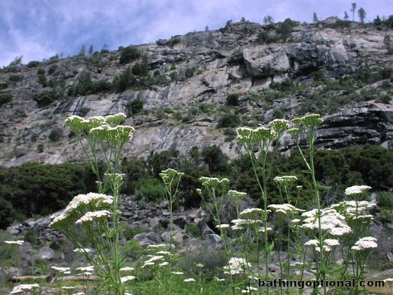 Wildflowers and cliffs.