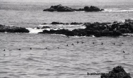 Birds flying over Point Lobos waters.