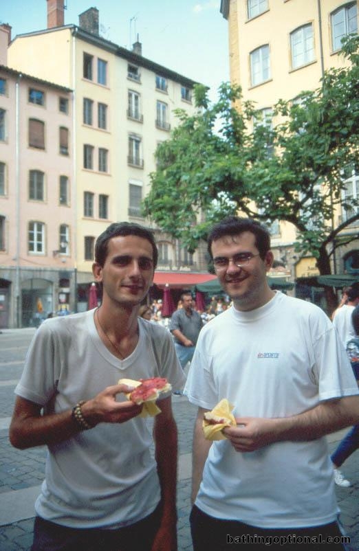 Maciej with his friend from Japan, Xavier in the streets of Lyon.