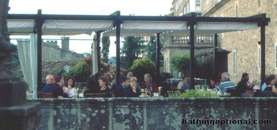 Following months of camping in city parks and eating out of our backpack we couldnt help but call these folks : richies. Spain, Santiago De Compostella - 11-Aug-04