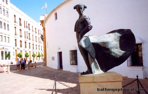 Matador statue in front of Rondas famous bull ring.