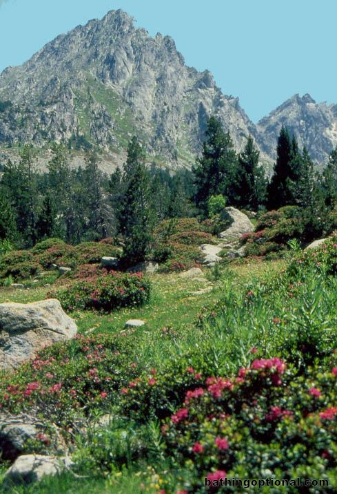 Wildflowers and peaks.