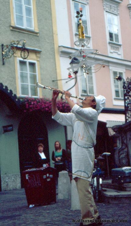 And the best street performer we saw in all of Europe. He played a recognizable song on the oboe while balancing all that on his nose... and that was just one of his many tricks. Austria, Salzburg - 07-Jul-03