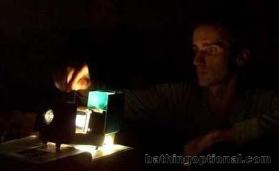 Using an ancient Russian projector to show Tomas and Katarina some of our slides. Slovakia, Bratislava - 03-Sep-03