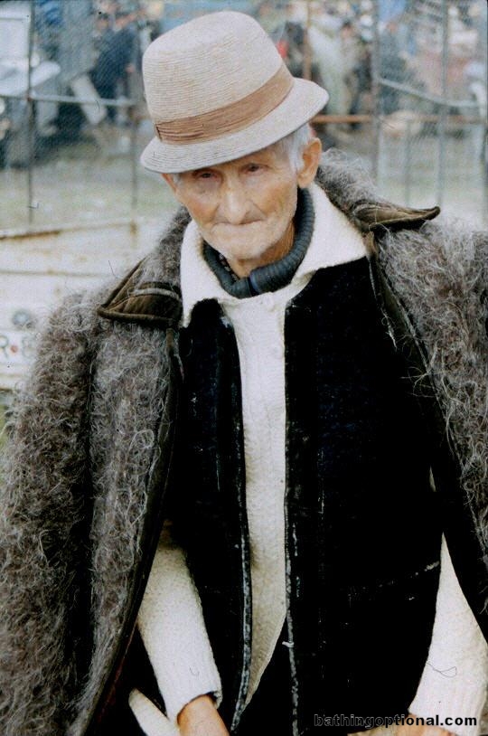 An older gentlemen in a fabulous wool jacket and sporting his best hat. Romania, Moldavia - 30-Aug-03