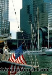 Yachts docked at the World Financial Center, Lower Manhattan. United States, New York City - 10-Oct-03