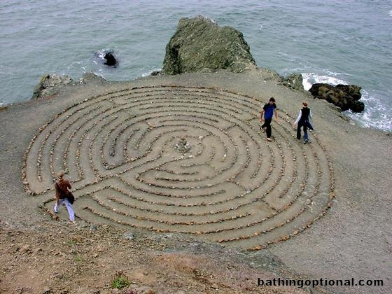 Ashe, Bart and Kristin walking the labyrinth at Lands End.