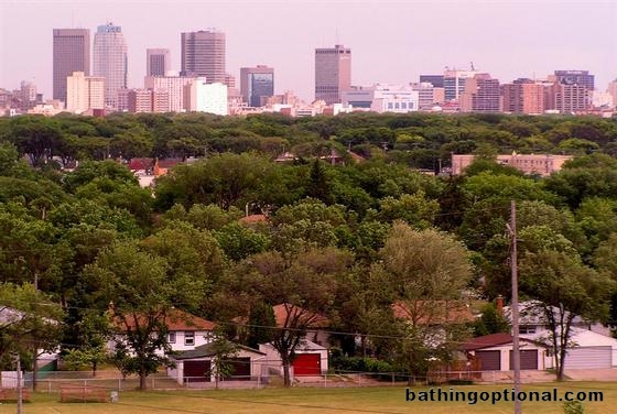 Winnipeg skyline as seen from the highest point in Winnipeg: a garbage dump turned landfill hill known as Garbage Hill. Canada, Winnipeg - 26-Jun-06