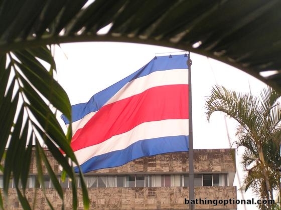 Costa Rican Flag waving by the government buildings in San Jose United States, San Francisco - 27-Jun-06