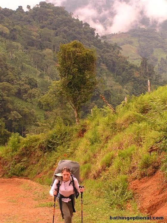 Ashe working hard to get to the top of the mountain we had to traverse in order go from the Rio Division to the Rio Savegre Valley on our way to the coast. Costa Rica, Rio Division Valley - 30-Jun-06