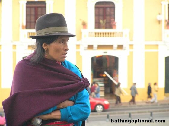 Lots of these traditionally dressed Ecuadorians roam the streets of Quito usually selling snacks, lottery tickets and other small goods. Ecuador, Quito - 04-Jul-06
