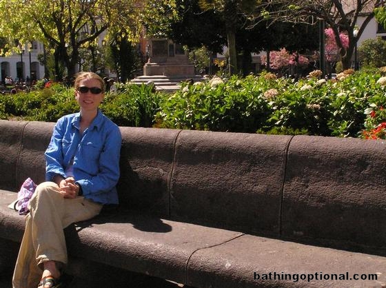 Ashe on a bench in the main plaza.