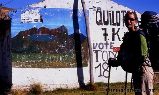 Ashe checking out the road sign -- only 7km to go!