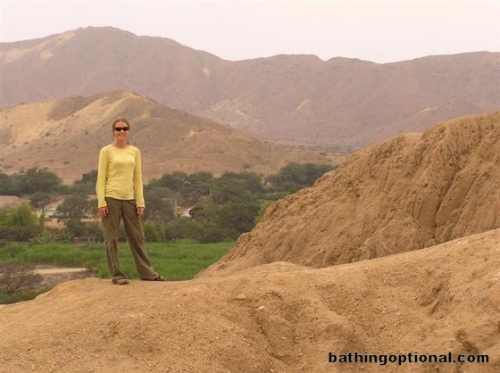 Ashe roaming around the pyramidal tomb of the Lord of Sipan.