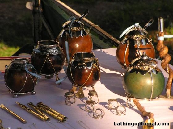 Mate, a national obsession in Argentina. Mate cups, gourds, and straws for sale everywhere in Argentina including Mendoza´s main plaza. Argentina, Mendoza - 19-Sep-06