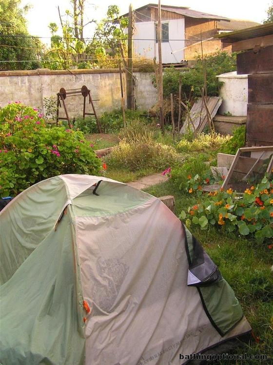 Our custom camping spot in someones backyard (yes, we had to go door to door asking locals if we could pitch our tent in their yard) in Horcon. Chile, Horcon - 23-Sep-06