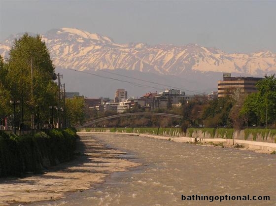 Santiagos natural saving graces are its wide, rushing river, riverside parks, and the Andes above it all and not too far away. Chile, Santiago - 24-Sep-06