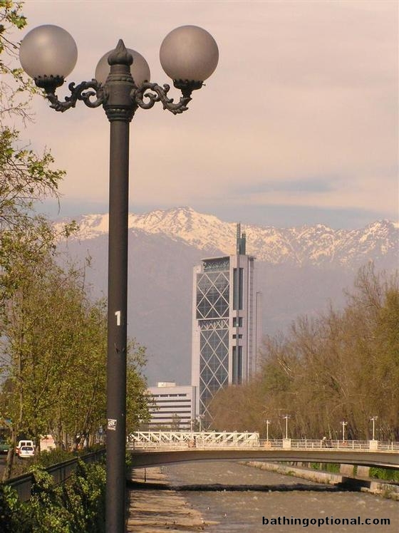River and mountain views in Santiago.