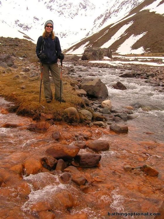 Ashe at the confluence of two creeks, one clear, one sulfurous orange. Chile, Maipo Canyon - 26-Sep-06