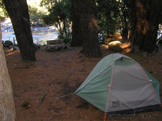 On our way south from Santiago to the Lake District, we made a second stop at the Reserva Radal Siete Tazas, a Reserve protecting rushing rivers and waterfalls, seven of which resemble little cups. Here, our fantastic riverside campsite under giant pines. Chile, Reserva Radal Siete Tazas - 28-Sep-06