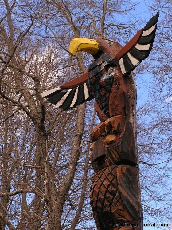 Mapuche Indian totem pole deep within the forest along a long, long dirt road in the middle of nowhere. Chile, Pucon - 01-Oct-06