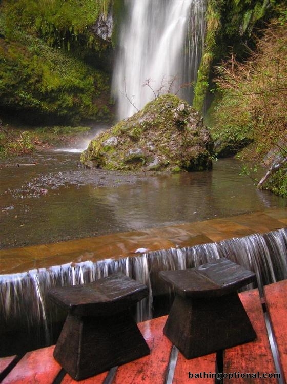 A couple seats with waterfall views.