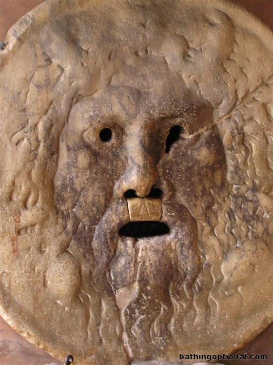 The Font of Truth at the church of San Alessio. Legend says that the mouth will close on the hand of a dishonest person. Italy, Rome - 07-Nov-06