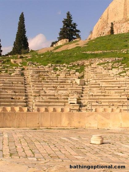 A visit to the the Acropolis usually begins by passing this small, but impressive ancient theater as you climb the hill. Greece, Athens - 13-Nov-06