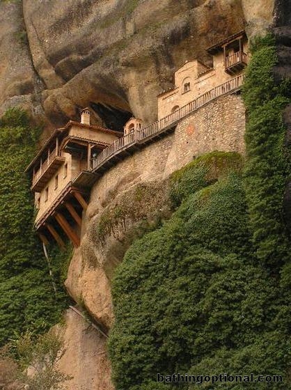 We got lost in the forest and mountains on our way to the second monastery. Lost, we came across this monastery, not on the tourist map and far from all the others. We were glad we had gotten lost. Greece, Meteora - 13-Nov-06