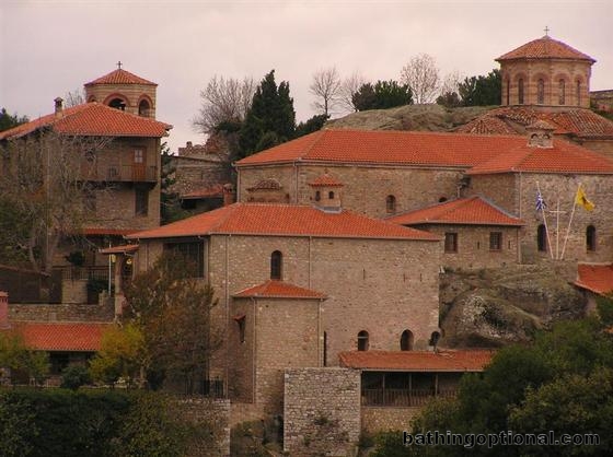 Megalo Meteora, the largest of the remaining monasteries. Once, a monastery stood on top of each of the 24 pinnacles at Meteora. Today, seven remain. Greece, Meteora - 13-Nov-06