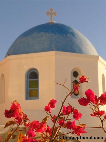 Oia is full of these blue-domed chapels but none seem to be open, even on Sunday morning when we tried to visit them. Greece, Oia, Santorini Island - 17-Nov-06