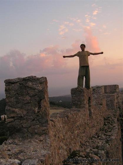 Walking on the castle wall.