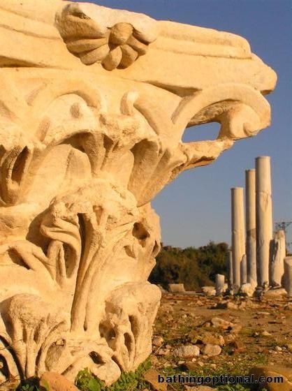 Ornamental pieces like this one lay scattered throughout all of ancient Side. We were surprised that all of them hadnt been taken by now. Turkey, Side - 26-Nov-06