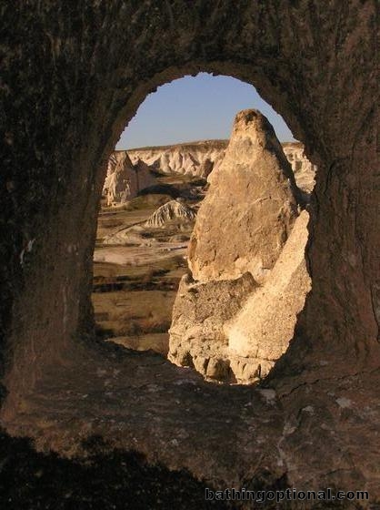 Looking out the window of one of the abandoned cave dwellings. Turkey, Goreme, Capadoccia - 28-Nov-06