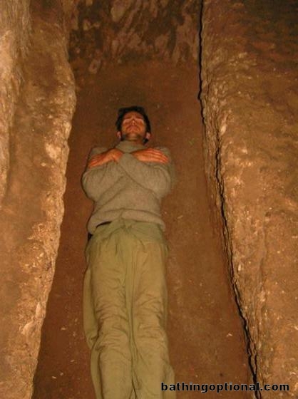 Maciej in one of the ancient graves that were unearthed in the deepest of the underground levels. Turkey, Derinkuyu Underground City, Capadoccia - 29-Nov-06