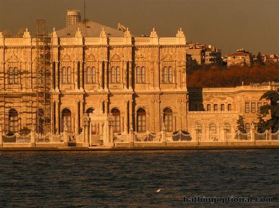 Views of Istanbuls grandest palace, Dolmabahce Palace, from the ferry back to the European side of the River. Turkey, Istanbul - 16-Dec-06