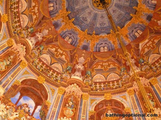 Painted dome inside the greatest of Dolmabahce Palaces many grand halls. Turkey, Istanbul - 19-Dec-06