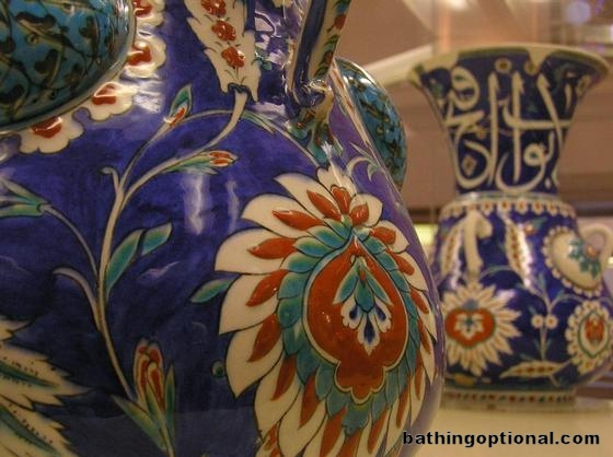Fine Iznik porcelain on display inside the Tiled Kiosk.