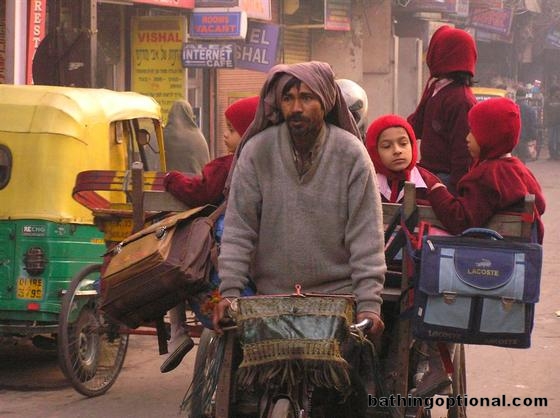 A new day in Delhi and the kids are off to school. A different school bus than we may be used to but it will still get them there on time. India, New Delhi - 05-Jan-07