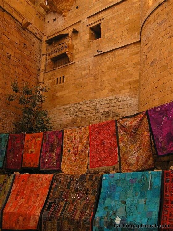 Another favorite with tourists in Rajasthan: colorful, patchwork bedspreads. India, Jaisalmer - 11-Jan-07