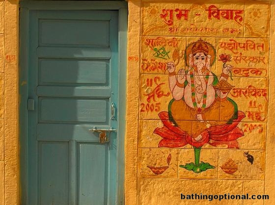 A Ganeesh image graces the front wall of many a home in Jaisalmer.