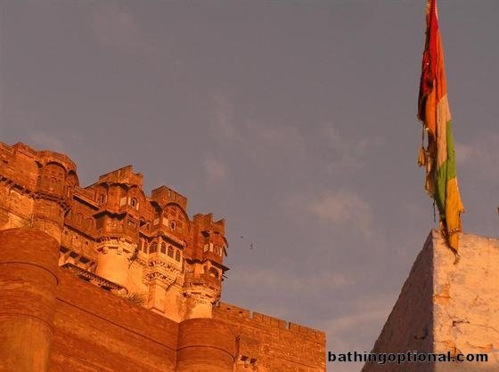 Standing over Jodhpurs blue Old Town is its massive fortress/palace complex, one of Rajasthans most impressive! India, Jodhpur - 12-Jan-07