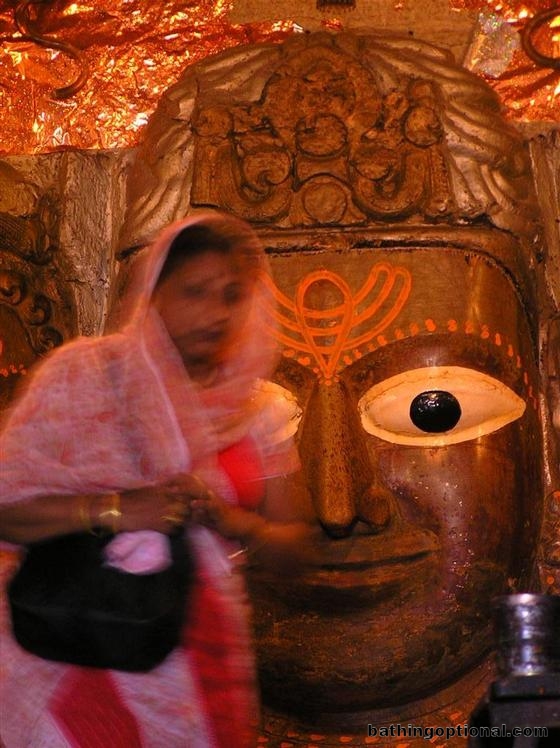Paying homage to a huge Shiva image.