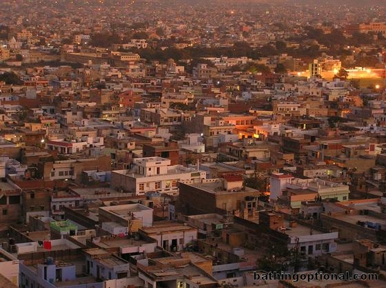 We arrived in Jaipur, Rajasthans capital, in the evening and headed right away for its hilltop fort lookout over the Old Town hoping to get a memorable view over the Pink City. It didnt look too pink from up high. India, Jaipur - 19-Jan-07