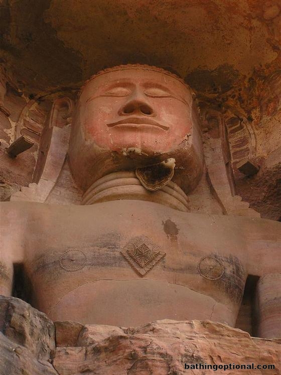 Muslim invaders made sure to remove the faces off of all idols. This one has had reconstructive surgery done. India, Gwalior - 24-Jan-07