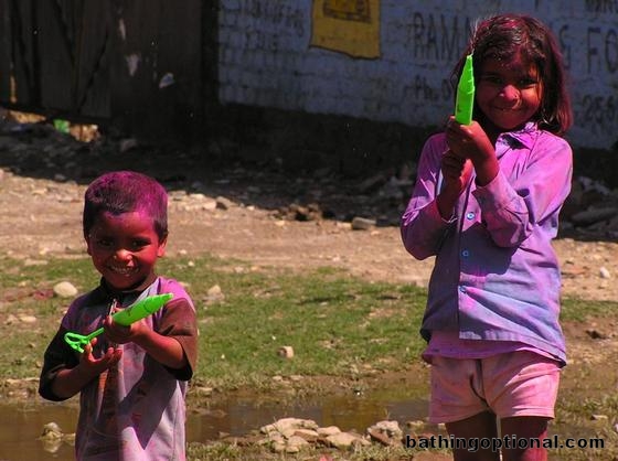 We woke up the next day in Rishikesh to see this. Kids covered in colorful powders with water guns filled with dyed water could only mean that its time for the Holi festival in India. India, Rishikesh - 04-Mar-07